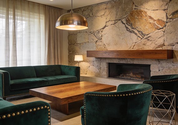 The synergy between velvet, wood, and stone is a testament to the power of contrast and harmony in interior design. Velvet, with its plush, tactile surface, introduces an element of luxury and warmth that is both inviting and elegant. Its ability to absorb and reflect light gives it a chameleon-like quality, adapting to the mood of the room and enhancing the overall ambiance. When paired with wood, velvet’s softness is beautifully juxtaposed against the natural grain and texture of wood, which brings an organic, grounding presence to the space. Wood, whether in the form of polished hardwood floors, rustic beams, or finely crafted furniture, adds a layer of depth and warmth that complements the sumptuousness of velvet. Stone, on the other hand, introduces an element of permanence and strength. Its cool, solid texture provides a striking contrast to the softness of velvet and the warmth of wood, creating a dynamic interplay that is both visually and texturally intriguing. The subtle veining of marble, the ruggedness of slate, or the timeless elegance of granite can serve as a focal point within a room, anchoring the design and adding a sense of timelessness. Together, these materials create a narrative of balance and sophistication, where each texture enhances the other, resulting in a space that is both cohesive and captivating.